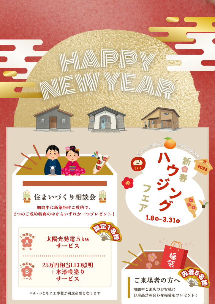 新春ハウジングフェア2026 開催 2025.12.19イベント ご予約・詳細はこちらから Tweet Share Hatena Pin it イベント 2/1(日)~2/28(土) 【家づくり相談会】 開催! 関連記事一覧 2/1(日)~2/28(土) 【家づくり相談会】 開催!