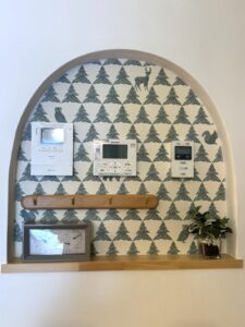 『クロスがアクセント!アーチ型のリモコンニッチ』