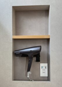ドライヤーやアイロンもコードごと収納できるので、生活感を抑えられる!